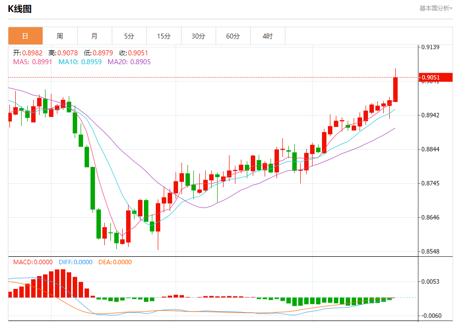 周四纽盘,瑞郎兑美元交投于0.9053,涨幅为0.73%。 瑞郎基本面分析 瑞士央行周四出乎市场意料地选择暂停加息,将关键利率维持在1.75%,而非市场预期的加息25个基点至2.00%,以避免陷入停滞的经济进一步受到紧缩政策的打击。不过,瑞士央行保留了未来进一步加息的可能性。瑞士央行行长Thoa