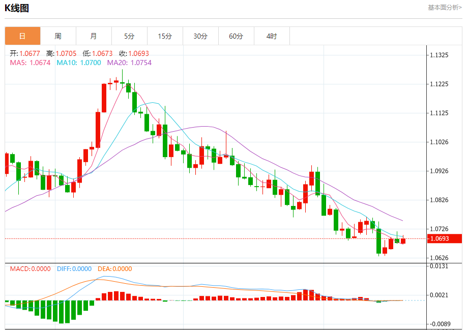 周三盘中,欧元/美元报1.0693,涨幅0.13%。 今日分析:在1.0670之上,看涨,目标价位为1.0715,然后为1.0730。 技术点评:RI技术指标向上运行。 支撑位:1.06701.06551.0640 阻力位:1.07451.07301.0715 (亚汇网编辑:冰凡)