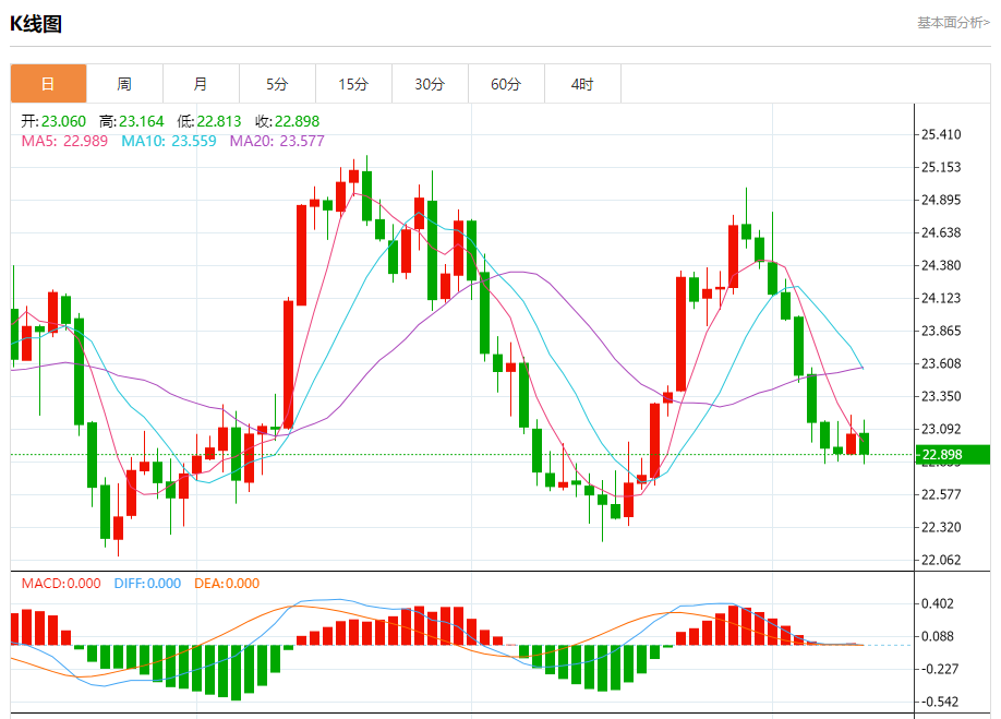 周二盘中,现货白银报22.960,跌幅0.41%。 今日分析:在23.00之下,看跌,目标价位为22.70,然后为22.60。 技术点评:RI技术指标看跌,有进一步下降空间。 支撑位:22.7022.6022.53 阻力位:23.1823.1023.00 (亚汇网编辑:冰凡)