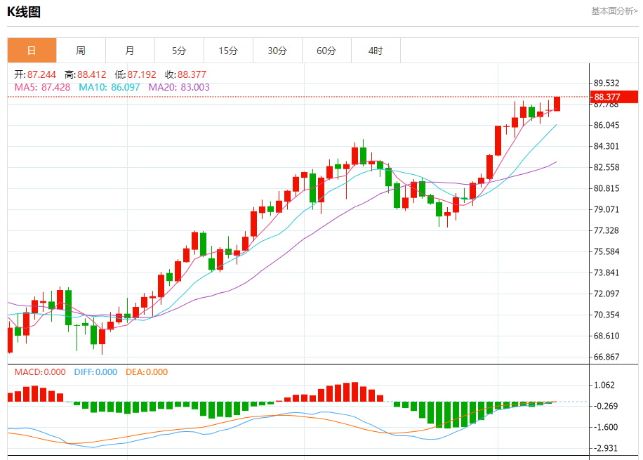 周二盘中,WTI原油报88.415,涨幅1.29%。 今日分析:在87.40之上,看涨,目标价位为88.15,然后为88.70。 技术点评:RI技术指标看涨,有进一步上升空间。 支撑位:87.4086.7086.15 阻力位:89.3088.7088.15 (亚汇网编辑:冰凡)