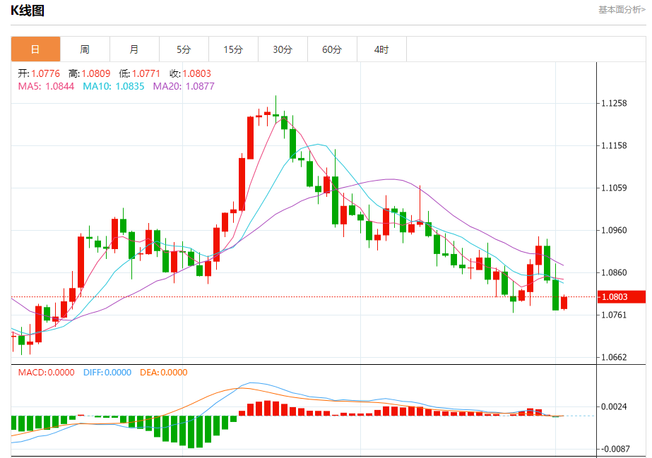 今日周一,欧元兑美元报1.0805,涨幅0.29%;英镑兑美元报1.2635,涨幅0.38%;美元兑日元报146.378,涨幅0.08%。 欧元兑美元汇率分析 技术点评:只要1.0810阻力位不被突破,向下跌破1.0770位置的风险很高。 阻力位:1.08551.08301.0810 支撑位:1.07701.07501.07