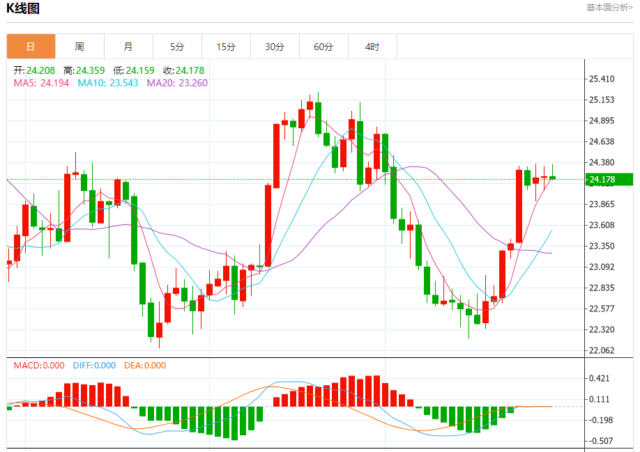 周二盘中,现货白银报24.213,涨幅0.01%。 今日分析:在24.10之上,看涨,目标价位为24.50,然后为24.65。 技术点评:24.10附近形成了一个支撑的底部,将带来走势短期内的稳定。 支撑位:24.1023.9023.75 阻力位:24.8024.6524.50 (亚汇网编辑: