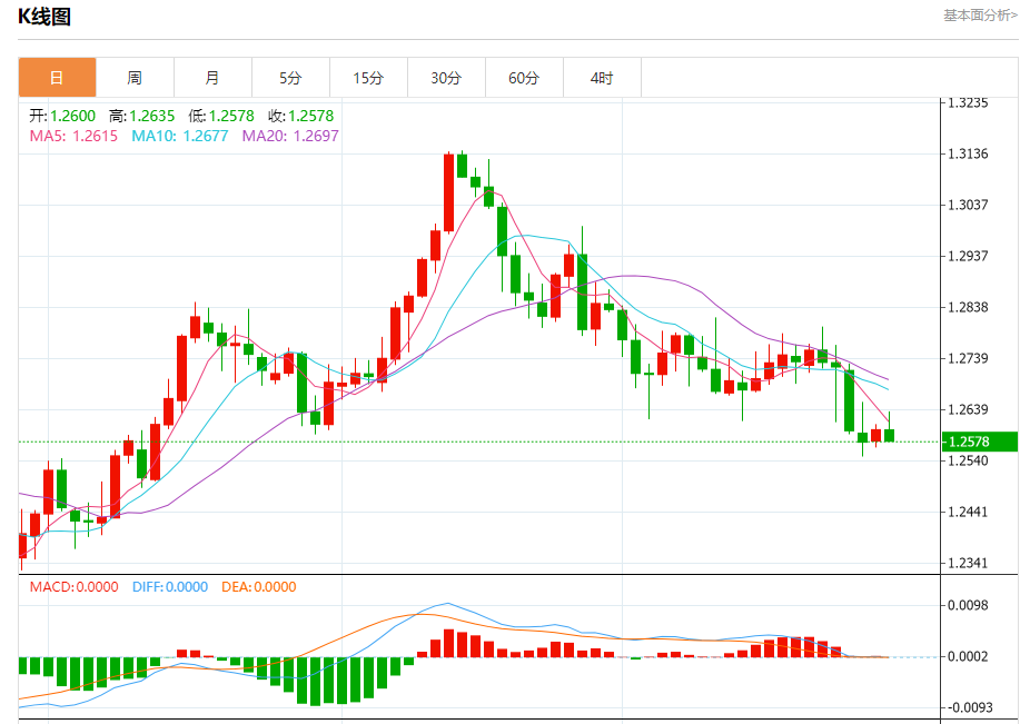 周二盘中,英镑/美元报1.2581,跌幅0.17%。 今日分析:在1.2635之下,看跌,目标价位为1.2580,然后为1.2565。 技术点评:RI技术指标向下运行。 支撑位:1.25801.25651.2545 阻力位:1.26701.26501.2635 (亚汇网编辑:冰凡)