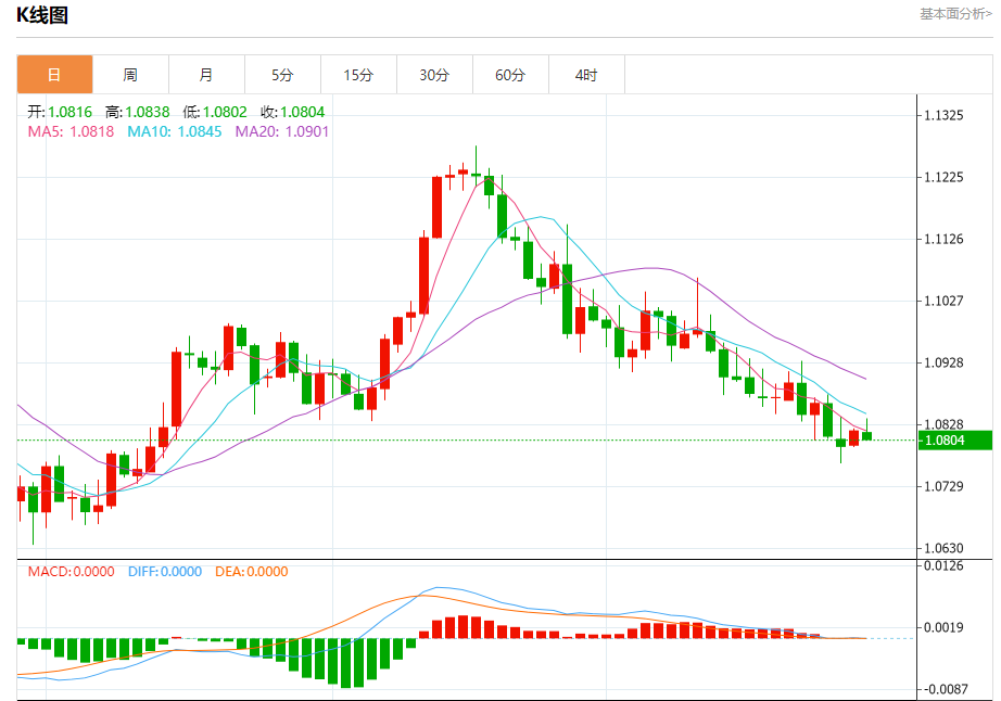 周二盘中,欧元/美元报1.0805,跌幅0.13%。 今日分析:在1.0840之下,看跌,目标价位为1.0795,然后为1.0780。 技术点评:RI技术指标向下运行。 支撑位:1.07951.07801.0765 阻力位:1.08751.08601.0840 (亚汇网编辑:冰凡)