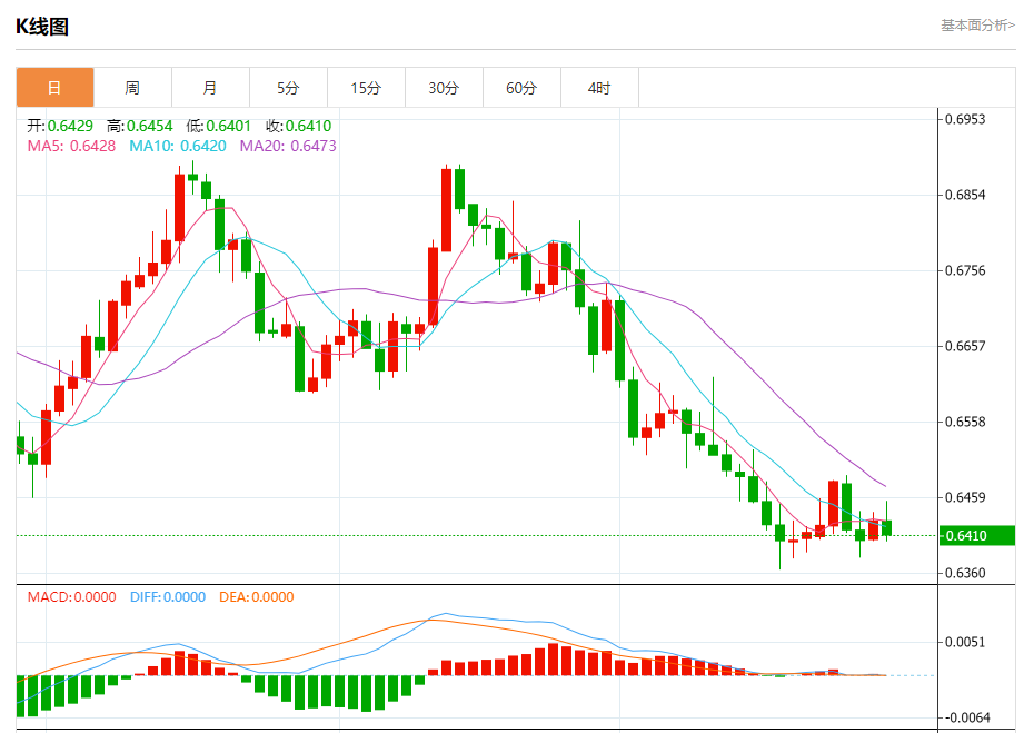 今日周二,澳元兑美元报0.6411,跌幅0.29%;美元兑加元报1.3629,涨幅0.23%;美元兑瑞郎报0.8848,涨幅0.09%。 澳元兑美元汇率分析 技术点评:RI技术指标缺乏下降动能 阻力位:0.64850.64650.6455 支撑位:0.64200.64000.6380 美元兑加元汇率分析