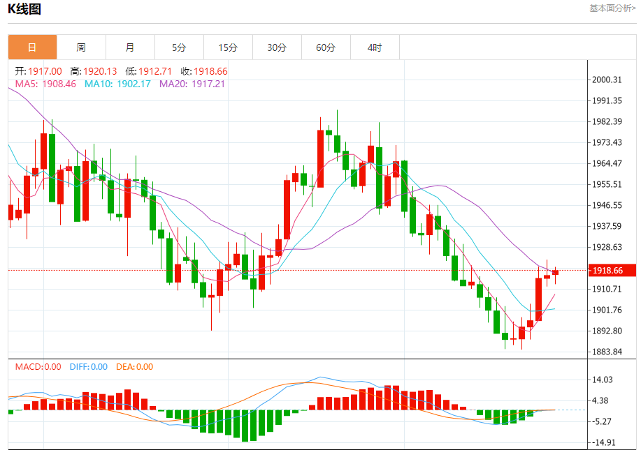 周五盘中,现货黄金报1918.28,涨幅0.09%。 今日分析:在1923.00之下,看跌,目标价位为1905.00,然后为1900.00。 技术点评:只要依旧存在1923.00阻力位,价格波动存在看跌的趋势。 支撑位:1905.001900.001895.00 阻力位:1936.001930.001923.00