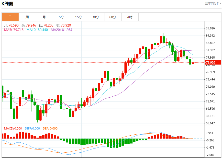 周四盘中,WTI原油报78.939,涨幅0.50%。 今日分析:在79.30之下,看跌,目标价位为78.30,然后为77.60。 技术点评:只要依旧存在79.30阻力位,价格波动存在看跌的趋势。 支撑位:78.3077.6074.00 阻力位:80.3079.8579.30 (亚汇网编辑:冰凡)