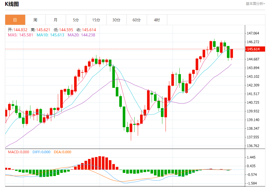 周四盘中,美元/日元报145.710,涨幅0.60%。 今日分析:在144.90之上,看涨,目标价位为145.75,然后为145.95。 技术点评:RI技术指标向上运行。 支撑位:144.90144.55144.30 阻力位:146.15145.95145.75 (亚汇网编辑:冰凡)