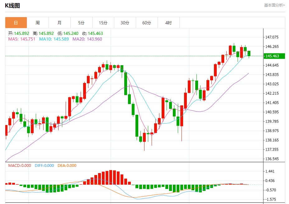 周三盘中,美元/日元报145.496,跌幅0.27%。 今日分析:在145.75之下,看跌,目标价位为145.10,然后为144.90。 技术点评:RI技术指标向下运行。 支撑位:145.10144.90144.75 阻力位:146.15145.95145.75 (亚汇网编辑:冰凡)