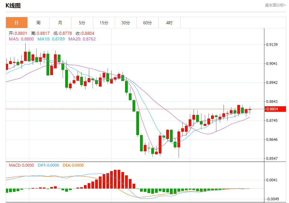 今日周三,澳元兑美元报0.6414,跌幅0.15%;美元兑加元报1.3591,涨幅0.29%;美元兑瑞郎报0.8809,涨幅0.05%。 澳元兑美元汇率分析 技术点评:RI技术指标向下运行。 阻力位:0.64700.64550.6440 支撑位:0.64050.63900.6375 美元兑加元汇率分析