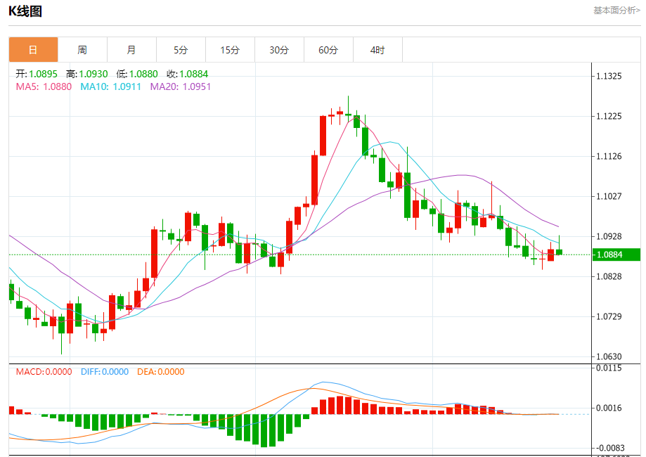 周二晚间,美元指数现报103.332,跌幅0.00%,现对美元兑欧元、英镑、日元主要货币对分析表述如下: 欧元/美元 汇价高见1.0930,低见1.0880。上一交易日,汇价收于1.0895。 基本面:欧元区面临的两种风险是,欧洲央行加息的幅度超过市场预期,或者通胀维持在高于市场预期的高