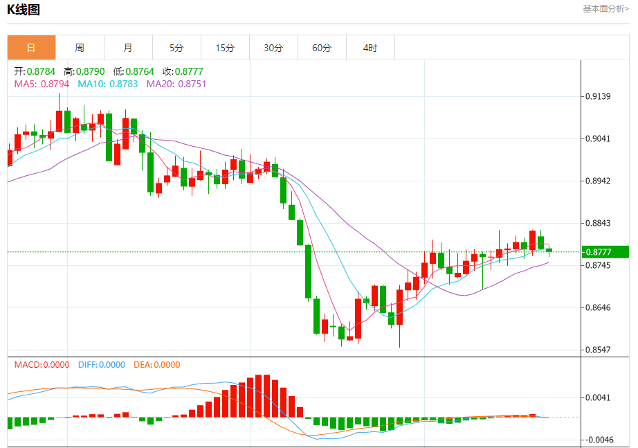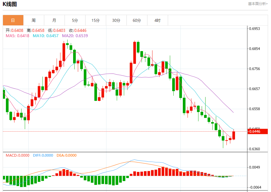 今日周二,澳元兑美元报0.6446,涨幅0.53%;美元兑加元报1.3519,跌幅0.19%;美元兑瑞郎报0.8783,跌幅0.04%。 澳元兑美元汇率分析 技术点评:RI技术指标运行趋势复杂,倾向于上涨。 阻力位:0.65000.64800.6460 支撑位:0.64200.64000.6385 美元
