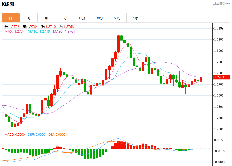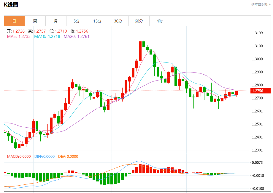 周一盘中,英镑/美元报1.2764,涨幅0.24%。 今日分析:在1.2710之上,看涨,目标价位为1.2765,然后为1.2785。 技术点评:RI技术指标向上运行。 支撑位:1.27101.26901.2670 阻力位:1.28051.27851.2765 (亚汇网编辑:冰凡)