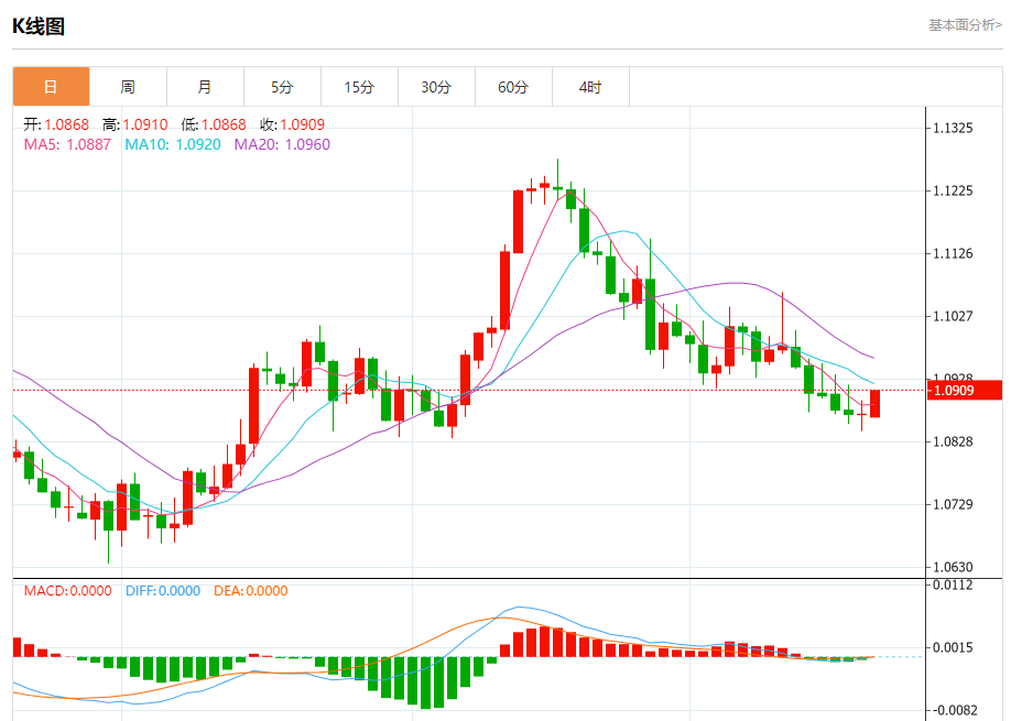 周一晚间,美元指数现报103.201,跌幅0.23%,现对美元兑欧元、英镑、日元主要货币对分析表述如下: 欧元/美元 汇价高见1.0910,低见1.0868。上一交易日,汇价收于1.0872。 基本面:目前有很多理由相信,未来几年欧洲经济将会增长,基本上是确保需求不会增加供应。因此,这不