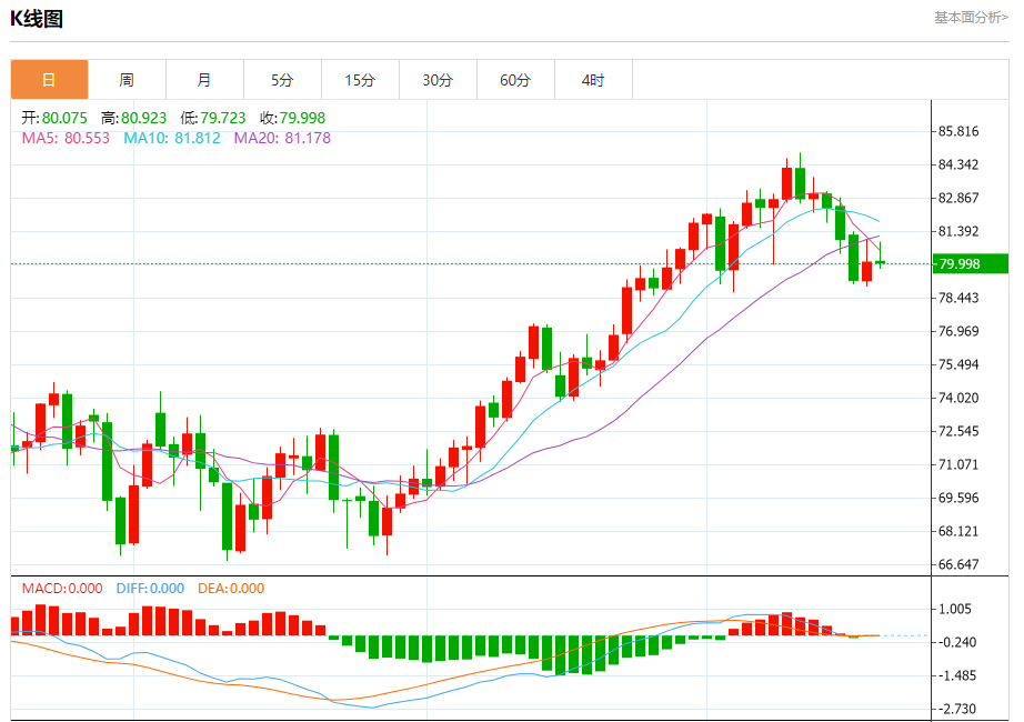 周五盘中,WTI原油报79.933,跌幅0.13%。 今日分析:在79.90之上,看涨,目标价位为81.10,然后为81.90。 技术点评:RI技术指标向上运行。 支撑位:79.9079.4578.90 阻力位:82.8081.9081.10 (亚汇网编辑:冰凡)