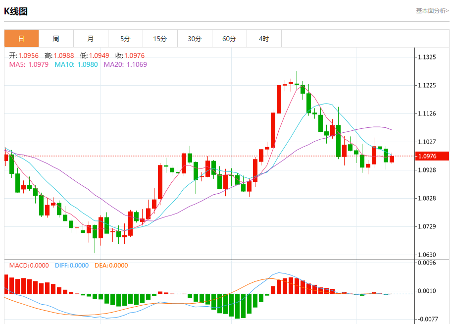 周三晚间,美元指数现报102.438,跌幅0.10%,现对美元兑欧元、英镑、日元主要货币对分析表述如下: 欧元/美元 汇价高见1.0988,低见1.0949。上一交易日,汇价收于1.0956。 基本面:一项衡量欧洲未来通胀的指标收于2010年以来的最高水平,显示2028年至2033年的平均通胀率为2.6