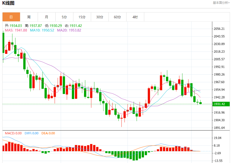 周五盘中,现货黄金报1931.97,跌幅0.10%。 今日分析:在1929.00之上,看涨,目标价位为1939.00,然后为1945.00。 技术点评:1929.00附近形成了一个支撑的底部,将带来走势短期内的稳定。 支撑位:1929.001923.001918.00 阻力位:1953.001945.001939.00