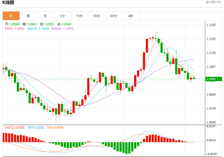 周五盘中,欧元/美元报1.0941,跌幅0.08%。 今日分析:在1.0965之下,看跌,目标价位为1.0915,然后为1.0895。 技术点评:RI技术指标向下运行。 支撑位:1.09151.08951.0865 阻力位:1.10001.09801.0965 (亚汇网编辑:冰凡)