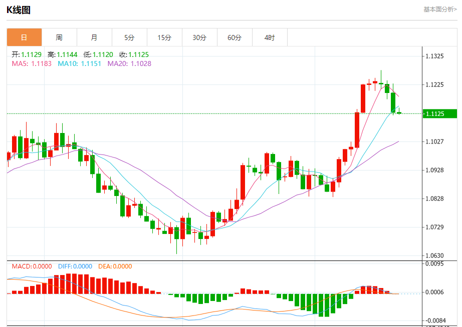 周五盘中,欧元/美元报1.1127,跌幅0.03%。 今日分析:在1.1145之下,看跌,目标价位为1.1115,然后为1.1095。 技术点评:RI技术指标向下运行。 支撑位:1.11151.10951.1080 阻力位:1.11951.11651.1145 (亚汇网编辑:冰凡)