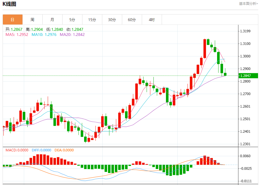 周五盘中,英镑/美元报1.2835,跌幅0.26%。 今日分析:在1.2910之下,看跌,目标价位为1.2810,然后为1.2780。 技术点评:RI技术指标运行趋势复杂,倾向于下跌。 支撑位:1.28101.27801.2750 阻力位:1.29601.29351.2910 (亚汇网编辑:冰凡)