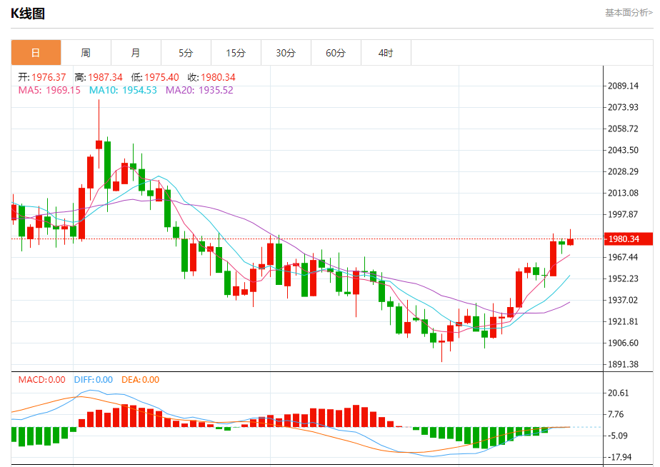周四盘中,现货黄金报1979.31,涨幅0.13%。 今日分析:在1975.00之上,看涨,目标价位为1988.00,然后为1994.00。 技术点评:即使我们不能排除持续调整的可能性,其时间长度上,应该是有限的。 支撑位:1975.001969.001962.00 阻力位:2000.001994.001988.00
