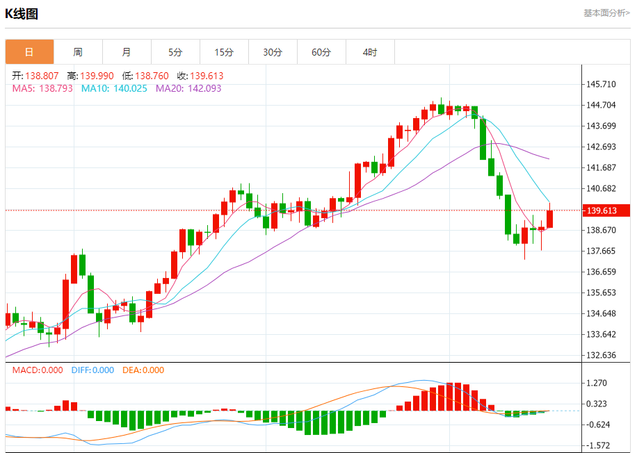 周三盘中,美元/日元报139.628,涨幅0.57%。 今日分析:在139.10之上,看涨,目标价位为140.20,然后为140.50。 技术点评:RI技术指标向上运行。 支撑位:139.10138.60138.30 阻力位:140.95140.50140.20 (亚汇网编辑:冰凡)