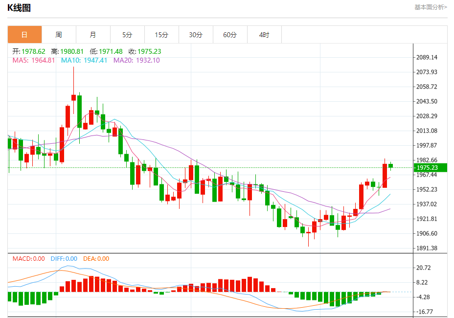 周三盘中,现货黄金报1977.05,跌幅0.08%。 今日分析:在1966.00之上,看涨,目标价位为1984.00,然后为1990.00。 技术点评:RI技术指标运行趋势复杂,倾向于上升。 支撑位:1966.001960.001954.00 阻力位:2000.001990.001984.00 (亚汇网编辑: