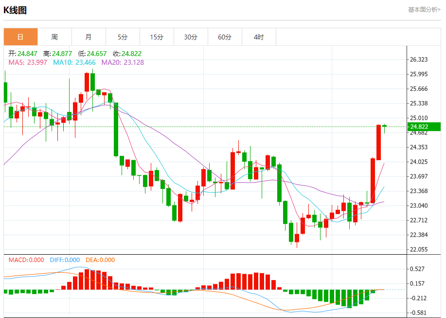 周五盘中,现货白银报24.851,跌幅0.01%。 今日分析:在24.53之上,看涨,目标价位为24.90,然后为25.10。 技术点评:RI技术指标缺乏下降动能 支撑位:24.5324.2924.05 阻力位:25.4025.1024.90 (亚汇网编辑:冰凡)