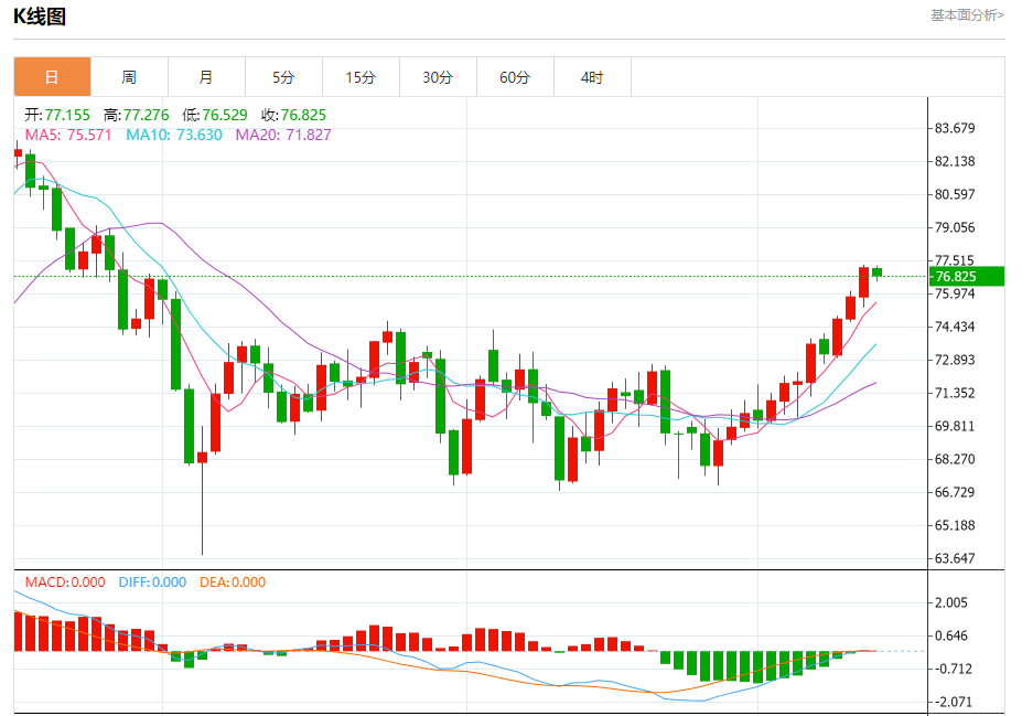 周五盘中,WTI原油报76.715,跌幅0.62%。 今日分析:在76.55之上,看涨,目标价位为77.35,然后为78.00。 技术点评:即使我们不能排除持续调整的可能性,其时间长度上,应该是有限的。 支撑位:76.5576.0075.30 阻力位:78.5078.0077.35 (亚汇网
