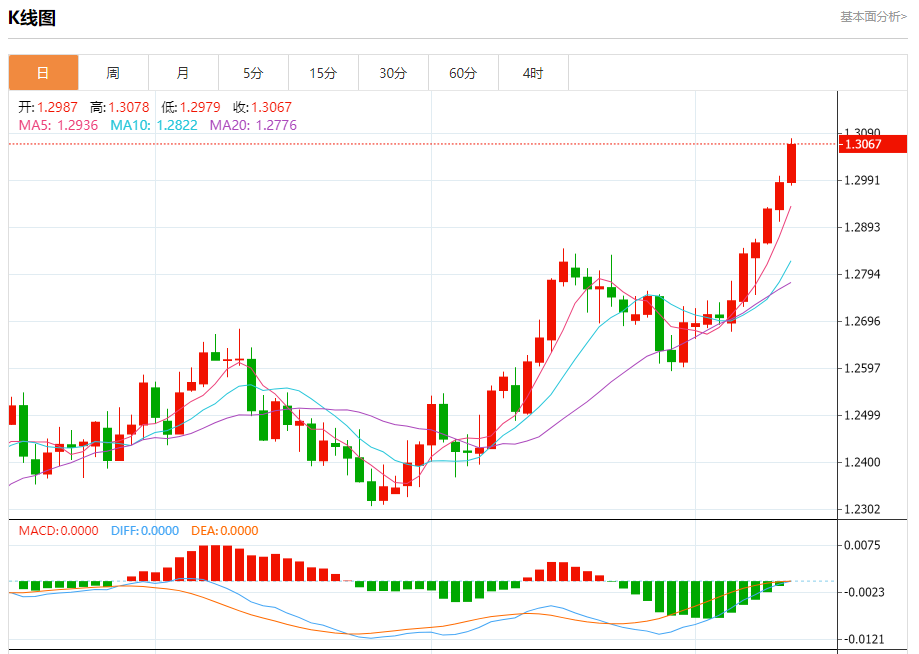 周四盘中,英镑/美元报1.3067,涨幅0.62%。 今日分析:在1.3000之上,看涨,目标价位为1.3090,然后为1.3130。 技术点评:RI技术指标呈现继续上升趋势。 支撑位:1.30001.29701.2940 阻力位:1.31851.31301.3090 (亚汇网编辑:冰凡)