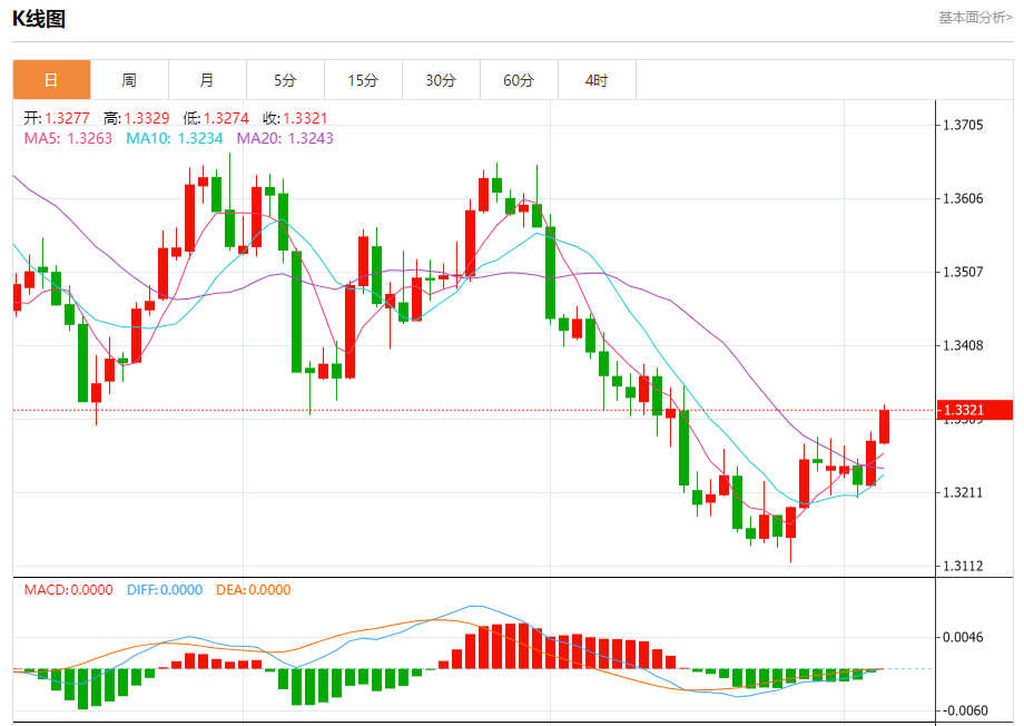 今日周四,澳元兑美元报0.6640,跌幅0.24%;美元兑加元报1.3319,涨幅0.29%;美元兑瑞郎报0.8970,跌幅0.21%。 澳元兑美元汇率分析 技术点评:RI技术指标看涨,有进一步向上趋势。 阻力位:0.67200.67050.6690 支撑位:0.66500.66300.6615 美元兑