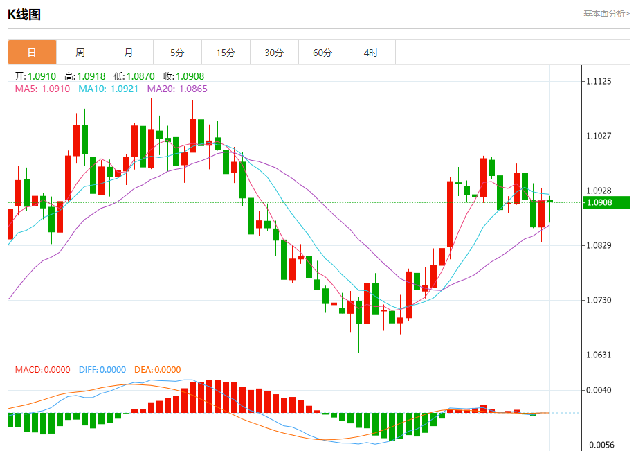 周一盘中,欧元/美元报1.0908,跌幅0.03%。 今日分析:在1.0915之下,看跌,目标价位为1.0855,然后为1.0830。 技术点评:只要依旧存在1.0915阻力位,价格波动存在看跌的趋势。 支撑位:1.08551.08301.0800 阻力位:1.09601.09401.0915 (亚汇网编