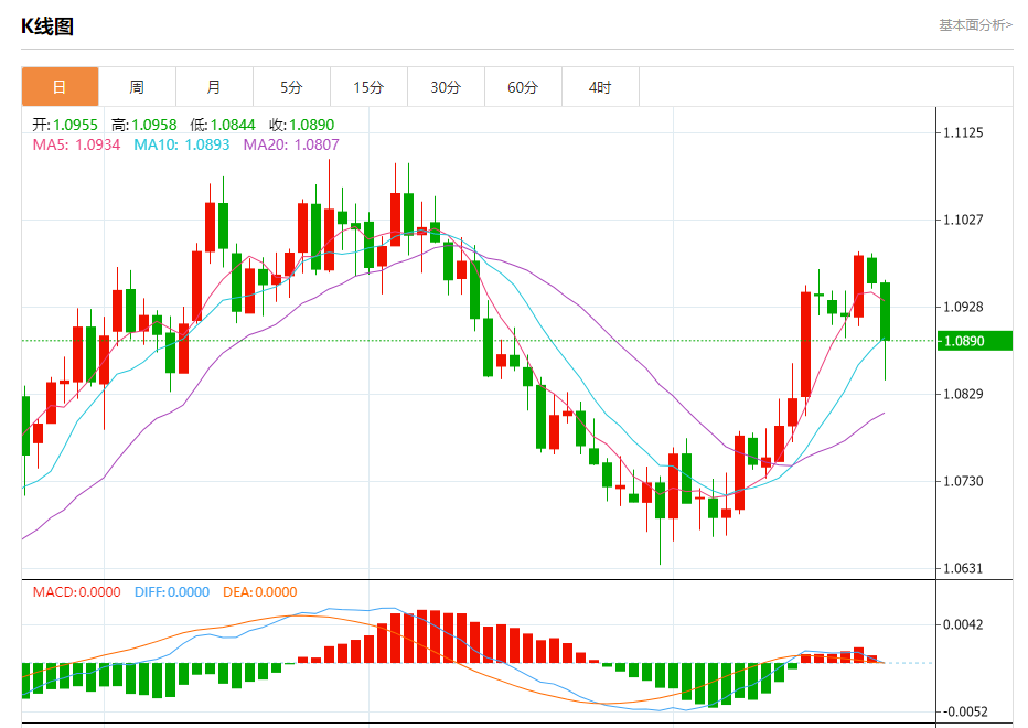 周五盘中,欧元/美元报1.0888,跌幅0.62%。 今日分析:在1.0920之下,看跌,目标价位为1.0805,然后为1.0770。 技术点评:跌破1.0920,为空头信号,向下的目标将会是1.0805。 支撑位:1.08051.07701.0740 阻力位:1.09601.09451.0920 (亚汇网编辑