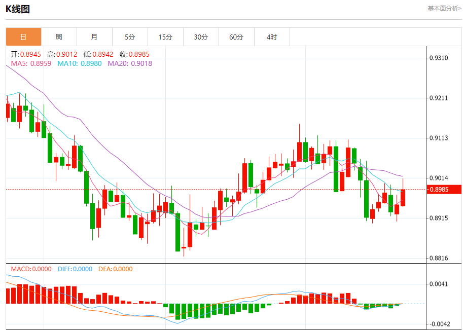 周五纽盘,瑞郎兑美元交投于0.8986,涨幅为0.41%。 瑞郎基本面分析 市场分析师GaryHow称,瑞士央行加息幅度小导致瑞郎下滑,但不要押注长期下跌。瑞士央行周四加息25个基点,并上调了通胀预期。加息25个基点的决定可能会让市场失望,因为市场此前也预期可能加息50个基点,这解释了瑞郎的