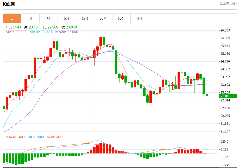 周三盘中,现货白银报22.988,跌幅0.61%。 今日分析:在23.30之下,看跌,目标价位为22.90,然后为22.70。 技术点评:RI技术指标看跌,有进一步下降空间。 支撑位:22.9022.7022.50 阻力位:23.6223.4723.30 (亚汇网编辑:冰凡)