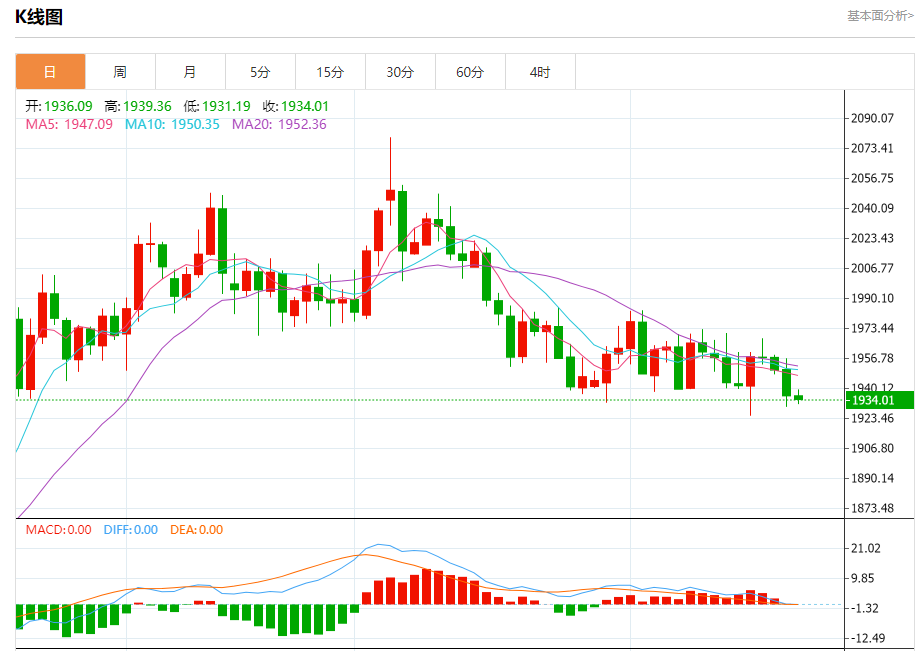 周三盘中,现货黄金报1930.73,跌幅0.27%。 今日分析:在1945.00之下,看跌,目标价位为1926.00,然后为1920.00。 技术点评:跌破1945.00,为空头信号,向下的目标将会是1926.00。 支撑位:1926.001920.001913.00 阻力位:1956.001950.001945.00