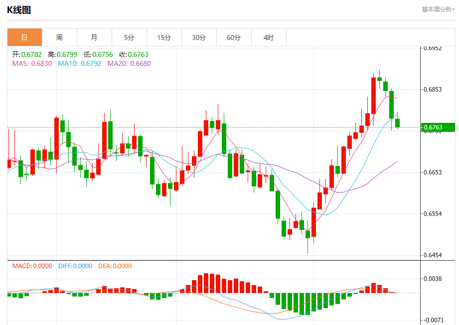 今日周三,澳元兑美元报0.6764,跌幅0.30%;美元兑加元报1.3221,跌幅0.11%;美元兑瑞郎报0.8974,跌幅0.05%。 澳元兑美元汇率分析 技术点评:只要依旧存在0.6780阻力位,价格波动存在看跌的趋势。 阻力位:0.68200.68000.6780 支撑位:0.67500.67350.6700