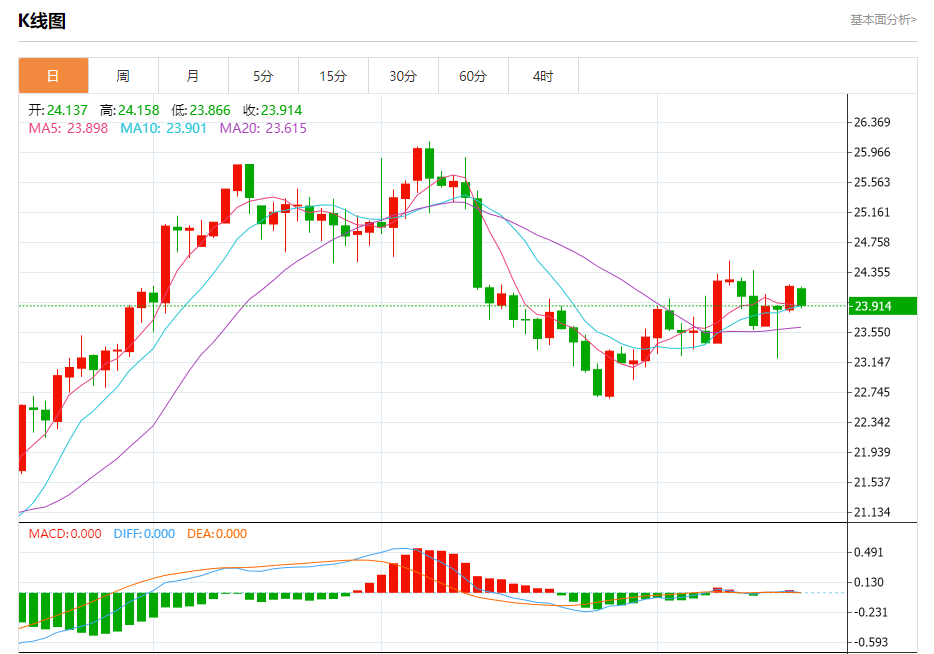 周一盘中,现货白银报23.974,跌幅0.81%。 今日分析:在24.12之下,看跌,目标价位为23.80,然后为23.63。 技术点评:RI技术指标看跌,有进一步下降空间。 支撑位:23.8023.6323.58 阻力位:24.4024.2124.12 (亚汇网编辑:冰凡)