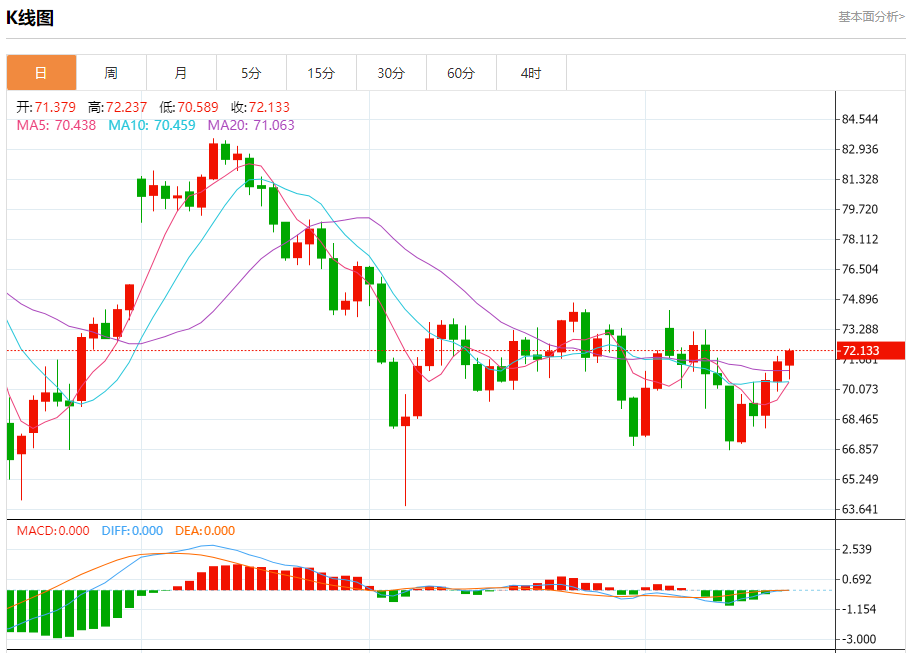 周一盘中,WTI原油报71.906,涨幅0.49%。 今日分析:在71.20之上,看涨,目标价位为72.00,然后为72.70。 技术点评:RI技术指标看涨,有进一步上升空间。 支撑位:71.2070.8070.20 阻力位:73.0072.7072.00 (亚汇网编辑:冰凡)
