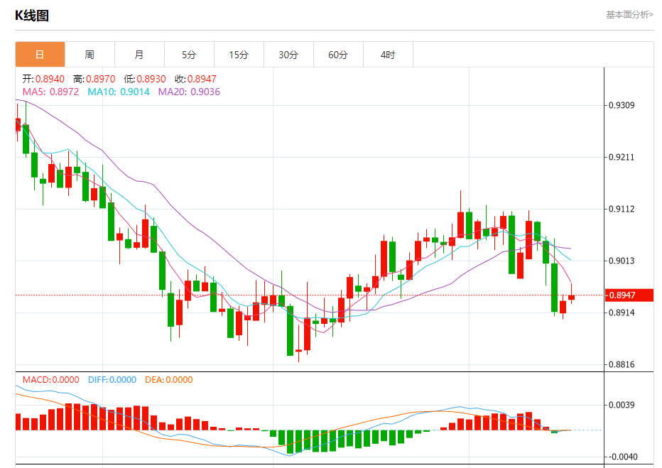 今日周一,澳元兑美元报0.6844,跌幅0.45%;美元兑加元报1.3195,跌幅0.01%;美元兑瑞郎报0.8955,涨幅0.20%。 澳元兑美元汇率分析 技术点评:RI技术指标运行趋势复杂,倾向于下降。 阻力位:0.69000.68850.6870 支撑位:0.68350.68200.6790 美元