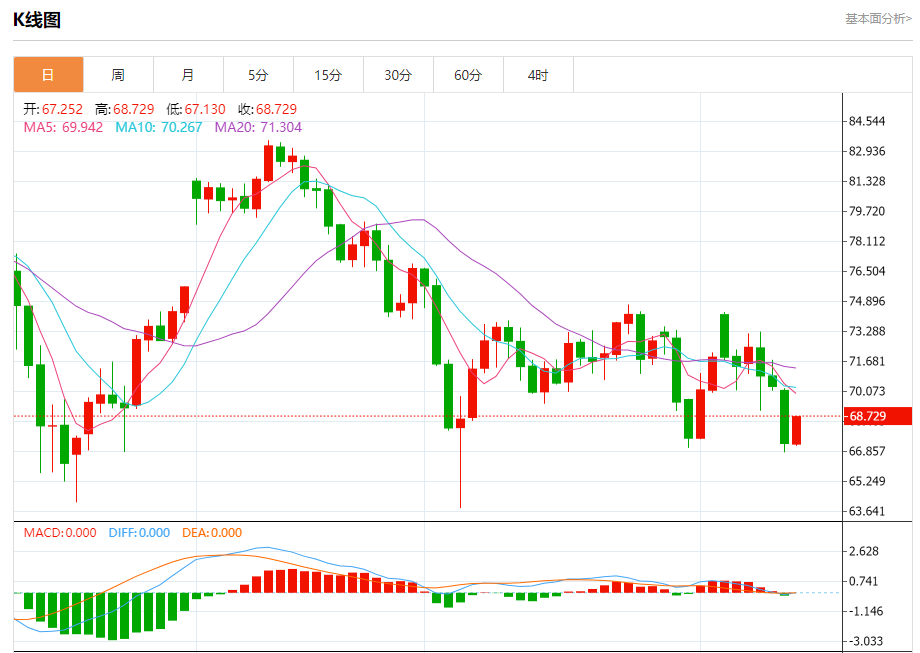 周二盘中,WTI原油报68.570,涨幅1.90%。 今日分析:在66.80之上,看涨,目标价位为69.30,然后为70.00。 技术点评:RI技术指标向上运行。 支撑位:66.8066.0064.90 阻力位:70.8070.0069.30 (亚汇网编辑:冰凡)