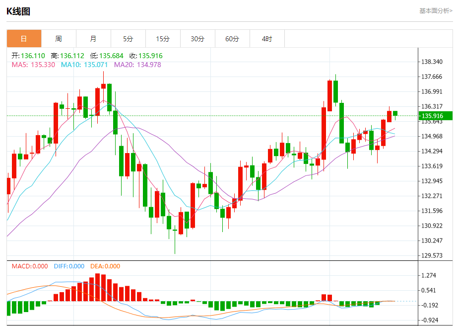 周二盘中,美元/日元报136.116,涨幅0.01%。 今日分析:在135.70之上,看涨,目标价位为136.10,然后为136.35。 技术点评:RI技术指标缺乏下降动能 支撑位:135.70135.40135.10 阻力位:136.60136.35136.10 (亚汇网编辑:冰凡)