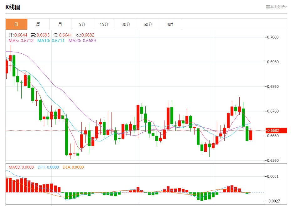 今日周一,澳元兑美元报0.6683,涨幅0.62%;美元兑加元报1.3514,跌幅0.31%;美元兑瑞郎报0.8961,跌幅0.25%。 澳元兑美元汇率分析 技术点评:RI技术指标向上运行。 阻力位:0.67500.67350.6705 支撑位:0.66500.66350.6620 美元兑加元汇率分析