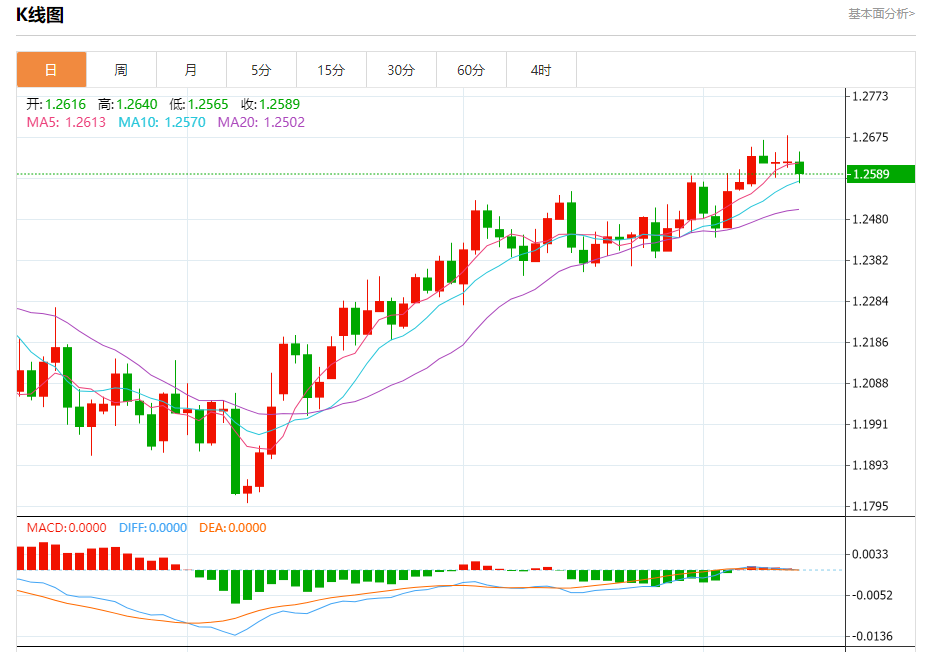 周四盘中,英镑/美元报1.2591,跌幅0.22%。 今日分析:在1.2560之上,看涨,目标价位为1.2640,然后为1.2655。 技术点评:RI技术指标向上运行。 支撑位:1.25601.25301.2510 阻力位:1.26801.26551.2640 (亚汇网编辑:冰凡)