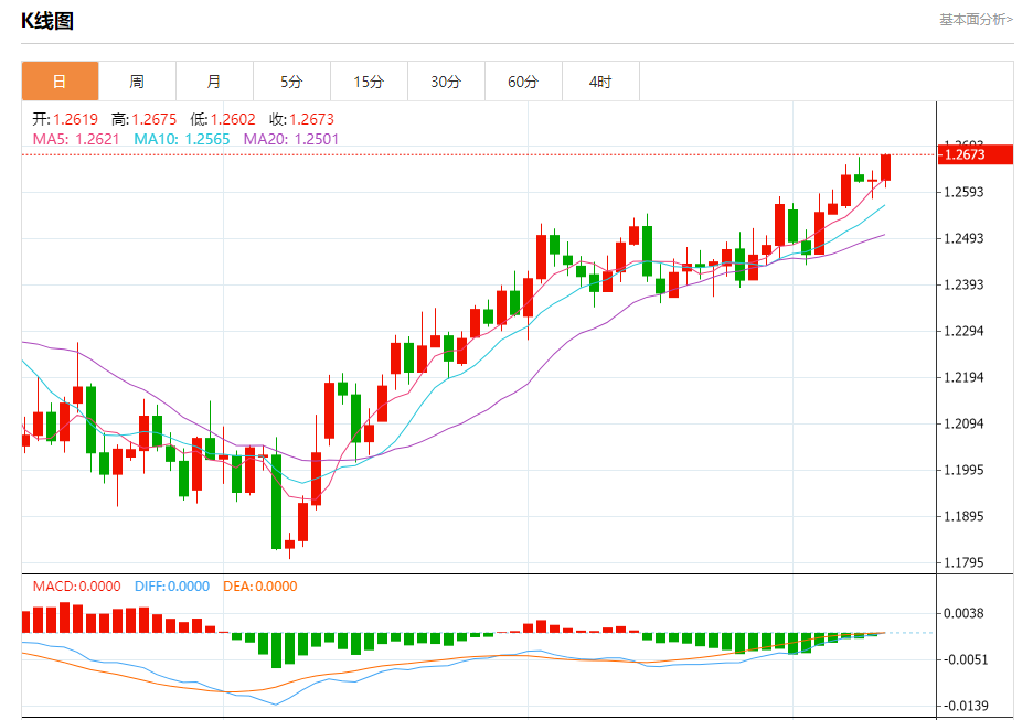 周三盘中,英镑/美元报1.2674,涨幅0.46%。 今日分析:在1.2645之下,看跌,目标价位为1.2595,然后为1.2575。 技术点评:RI技术指标向下运行。 支撑位:1.25951.25751.2545 阻力位:1.26701.26551.2645 (亚汇网编辑:冰凡)