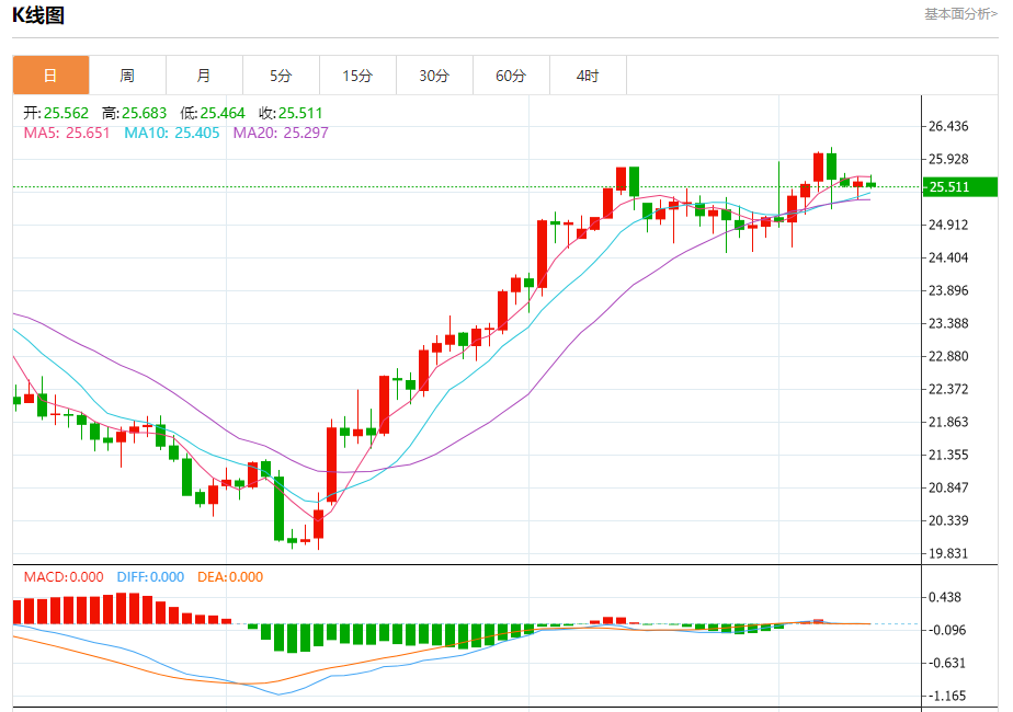周三盘中,现货白银报25.815,涨幅0.99%。 今日分析:在25.47之上,看涨,目标价位为25.78,然后为25.95。 技术点评:25.47附近形成了一个支撑的底部,将带来走势短期内的稳定。 支撑位:25.4725.3025.15 阻力位:26.1025.9525.78 (亚汇网编辑: