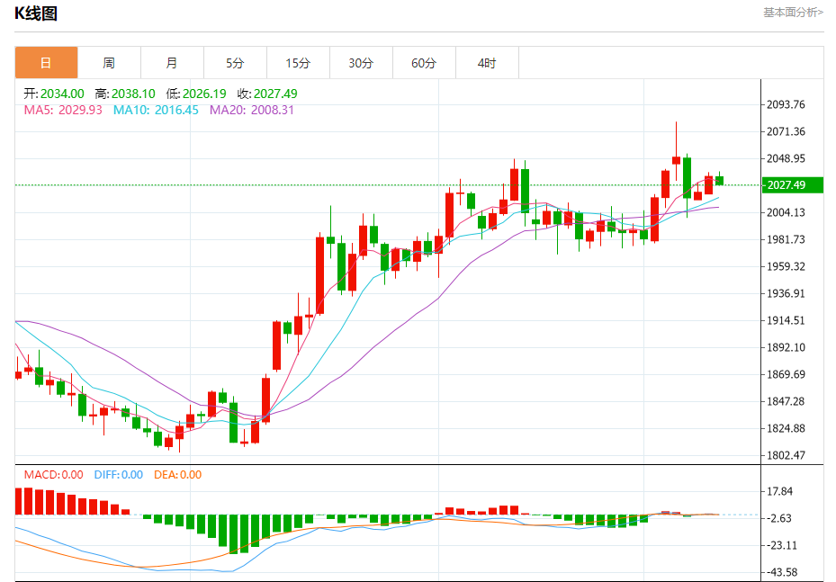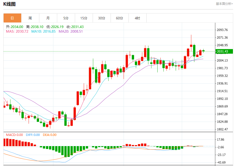 周三盘中,现货黄金报2025.36,跌幅0.42%。 今日分析:在2025.00之上,看涨,目标价位为2037.00,然后为2045.00。 技术点评:RI技术指标运行趋势复杂,倾向于上升。 支撑位:2025.002020.002014.00 阻力位:2051.002045.002037.00 (亚汇网编辑: