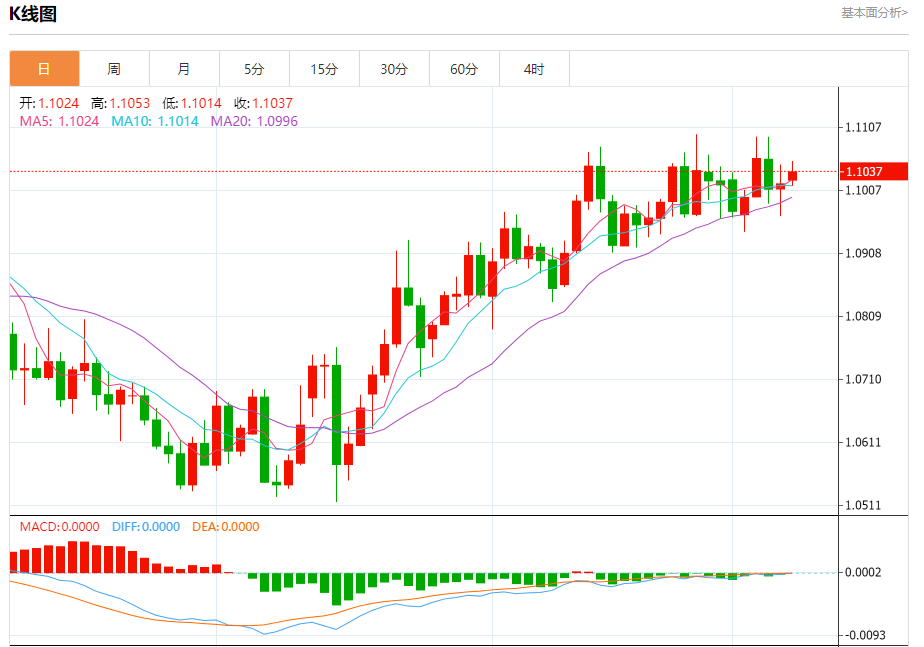 周一盘中,欧元/美元报1.1037,涨幅0.17%。 今日分析:在1.1020之上,看涨,目标价位为1.1055,然后为1.1070。 技术点评:RI技术指标向上运行。 支撑位:1.10201.10101.0995 阻力位:1.10901.10701.1055 (亚汇网编辑:冰凡)