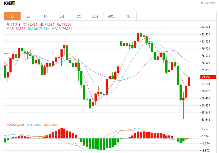 周一盘中,WTI原油报73.059,涨幅2.45%。 今日分析:在71.80之上,看涨,目标价位为73.90,然后为74.60。 技术点评:在71.80之上,为多头信号,向上的目标位为73.90。 支撑位:71.8070.9070.00 阻力位:75.3074.6073.90 (亚汇网编辑:冰凡)