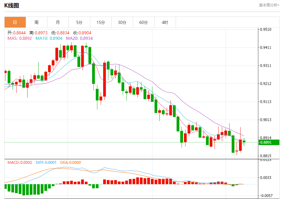 周一纽盘,瑞郎兑美元交投于0.8890,跌幅为0.18%。 瑞郎基本面分析 5月8日,瑞银财富管理亚太区投资总监办公室报告指,在消费反弹的带动下,第一季中国经济复苏强于预期,将全年GD增长预测上调为至少5.7%。该行又看好消费、互联网、运输、资本品和材料类股成为经济复苏的受益者。